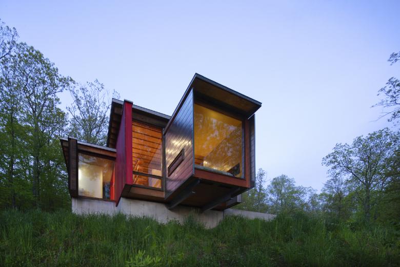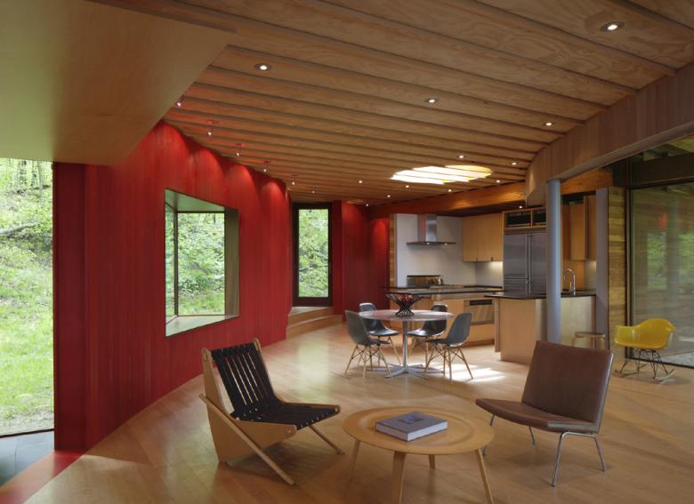 Peter Bohlin was first approached by the clients at a book signing, at which time they asked if Peter would be interested in designing a house for them on the edge of a mountain outside of Kent, Connecticut. As a child Peter grew up only miles from Kent, and as a young architect Peter designed his first house for his parents ten minutes north of the proposed site. This deep-rooted connection to the area, coupled with the clients’ unique design interests, made for a perfect pairing between client and architect.