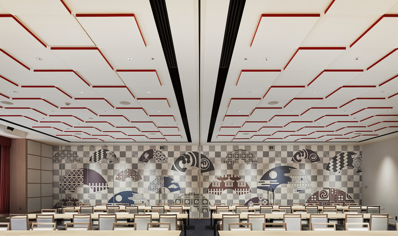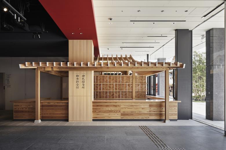 Set in a modern, exquisitely designed community space, our strategic design concept was to incorporate symbolic decorations and design motifs inspired by the Shrine that illustrate the idea of Engi, or good fortune.