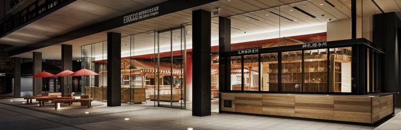 Located adjacent to central Tokyo’s Kanda Shrine, EDOCCO, Edo Culture Complex is an innovative, four-story (plus a basement level) commercial complex designed to showcase Japanese cultural traditions, as well as to appeal to a wide range of visitors, including tourists and younger generations. Completed in December 2018 to commemorate the 1,300th anniversary of the founding of Kanda Shrine, EDOCCO is a modern, light-filled space comprising a café, souvenir shops, an event hall, a Japanese culture–experience studio and modern entertainment center, and a multipurpose lounge space. Our groundbreaking concept of creating a community space in the sacred premises of Kanda Shrine is a social contribution project to preserve and promote Japanese cultural traditions and Shintoism.