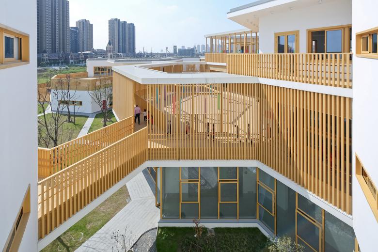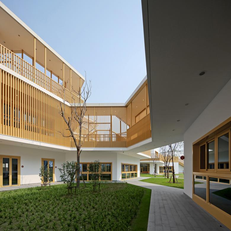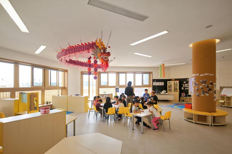 From their first contact with education, Chinese children are stressed by too much pressure to learn for a competitive society. From kindergarten through primary and secondary school and into university education, the entire learning education is based on high input with little space for individual interpretation and experience. The best marks bring the best starting position in later working life. However, looking to future, creative capacity will be crucial. Therefore it is becoming urgent to allow children a new freedom to learn for themselves in a stress-free environment. At least this new kindergarten provides a fitting and enabling physical space for such an experience, even if might take some time for society to reach the insight that creativity is not something hard-learned by heart, but something stimulated by experience.
