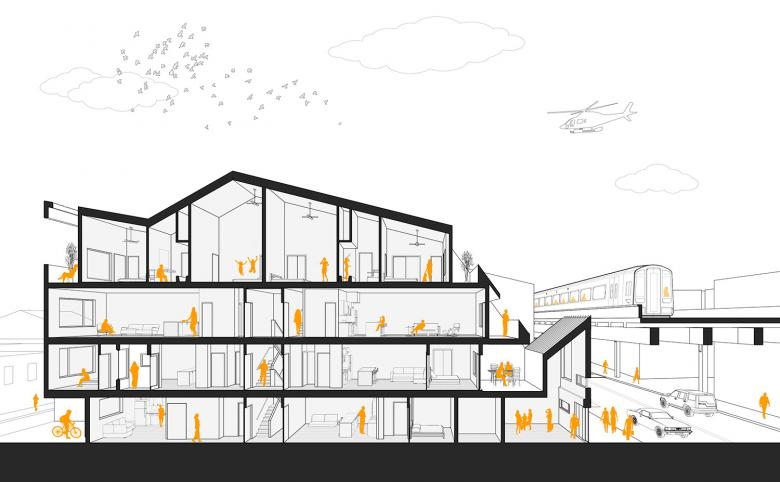 ISA - Interface Studio Architects is known for creative responses to housing needs in Philadelphia, Pennsyvania. Six years ago we featured their aptly named Modular Apartments as a Building of the Week, and now we highlight their El Chalet project, which had to contend with an elevated train line. This piece of urban infrastructure pointed the way to an attention-getting profile that is highly visible thanks to an empty lot next door. The architects answered a few questions about their design of El Chalet.