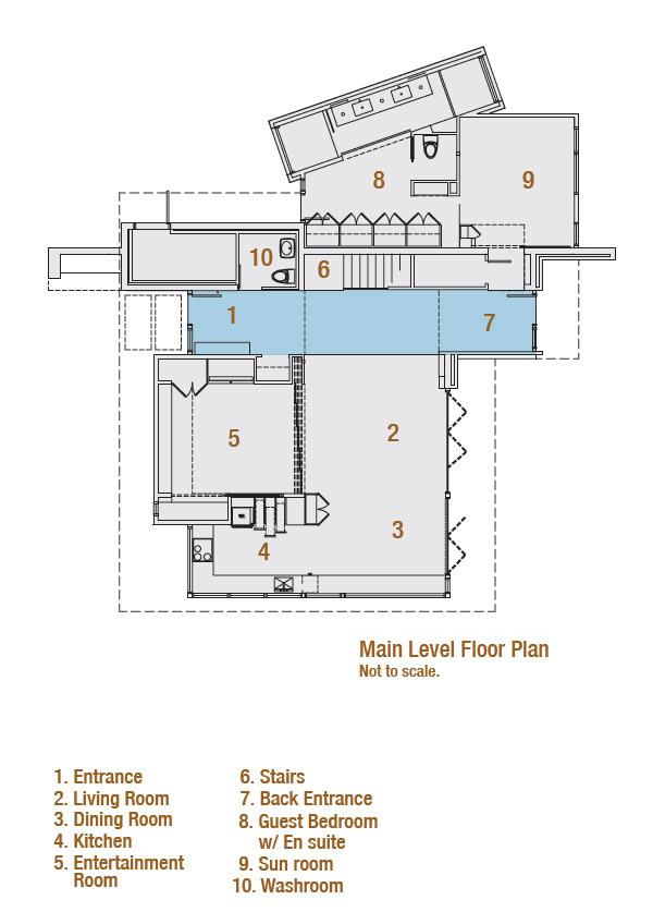 The integration of views and daylighting into the house are critical to its design concept. The unique site provides panoramic views over the Puget Sound: from Mount Rainier to Mount Baker with Seattle as the focal point. The site also overlooks the shipping channels evoking memories of the owners many years of service in the shipping industry. Every room in the house has a unique view to this setting or to gardens surrounding the home. Window fenestrations also play a critical role in passively heating the house. South facing windows along with overhead skylights warm thermal mass walls and floors affectively warming the house even on a cold winter day.