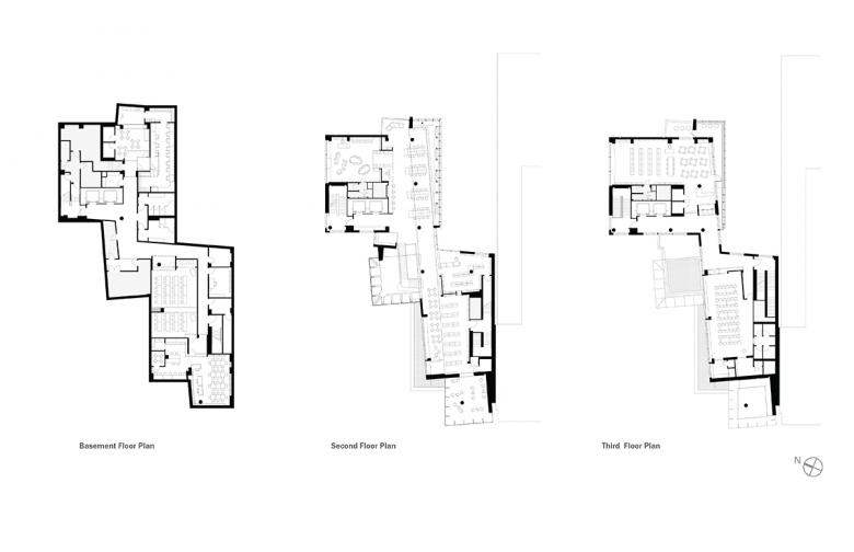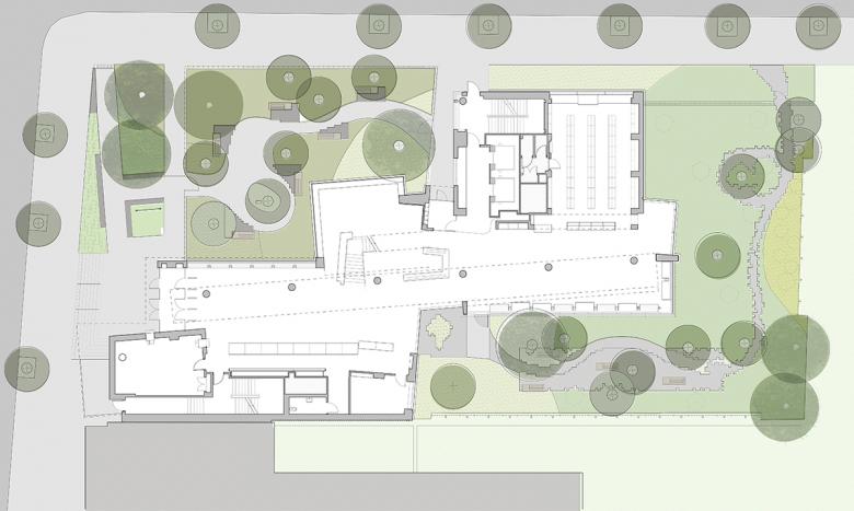 A separate entrance allows the building to operate after-hours as community hub and adult learning center, offering ESOL and other kinds of classes. In the main stair, wide landings with corner windows overlooking the park provide further opportunities for social interaction.