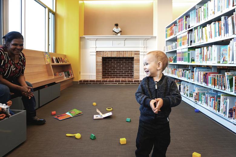 Following the decision to undertake a new building, meetings with neighborhood groups brought about Elmhurst Library Remembrance Project, including creation of a room for local history, the Elm-paneled Carnegie Reading Room, displays of historic drawings and photographs, and the restoration and reconstruction of the original Children’s Fireplace.