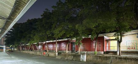 The project is based on the language of a common object in railway stations: containers. The work consists of five prisms measuring 50 m² each, built from steel frames, covered with metal tiles. These volumes are supported by concrete bases that also contain the infrastructure.