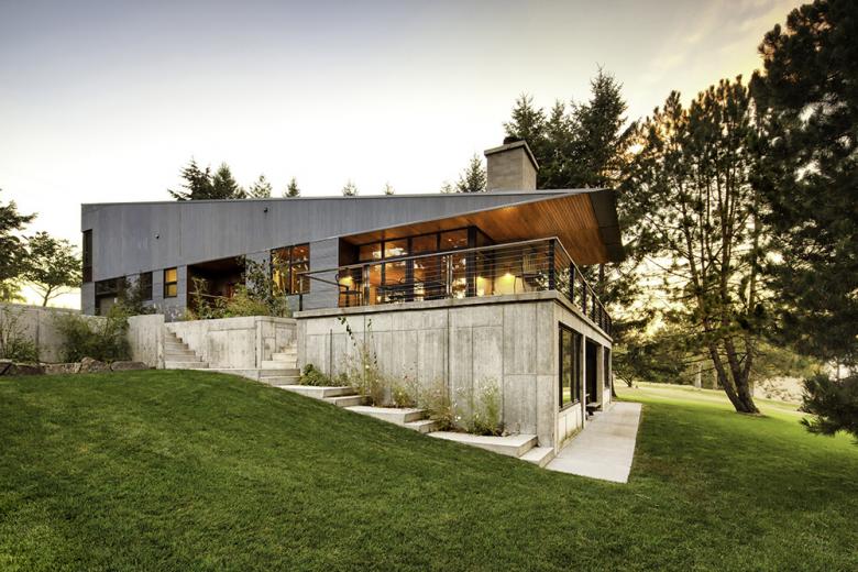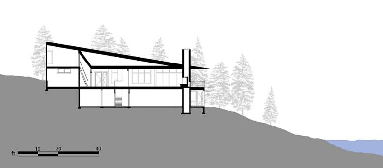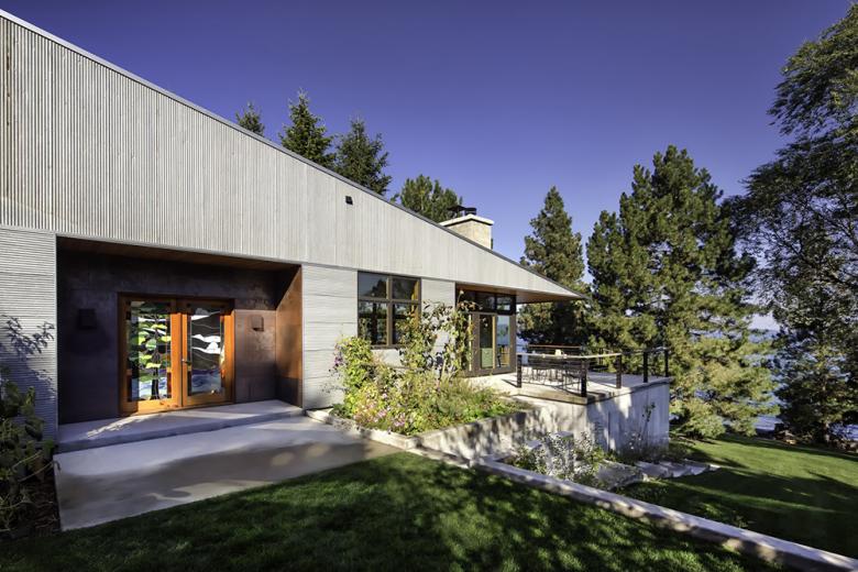 The site informed the design in powerful ways. It is located at one end of the 25-mile-long Flathead Lake, on a site with views the length of the north-south lake. The site slopes gently on a rolling lawn to the lake edge, although steep cliffs edge the rest of the lake. We had the idea early on that the building would be like a wedge of land lifted up from the land. The slope of the site is 16%, and the grass-roof wedge has same slope. So the project's poetic image is of a wedge of land that follows the natural slope.