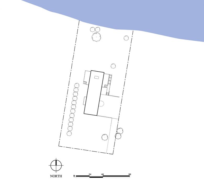 East elevation, looking toward lake