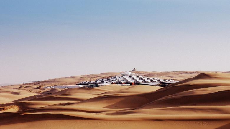 In addition to the challenge of designing a new hotel with 385 rooms and more than 20,000 square metres of floor space amidst the moving dunes of a sand desert, the client also required a building with high visual appeal. A unique solution was required.