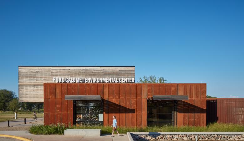 Big Marsh Park is a nearly 300-acre natural and recreational space on Chicago's Southeast Side, on land that was once an active industrial property. While industry has given way to hiking trails, BMX courses, and picnic grounds, the Ford Calumet Environmental Center — an architectural anchor in the middle of the park — recalls the site's past through its weathered steel walls. The architects at Valerio Dewalt Train answered some questions about the building.