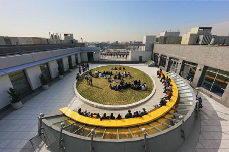 A multi-story skylit volume was proposed to introduce daylight into the center of the building and establish a multi-level zone of interchange and collaboration amidst a frame of densely ordered spaces. Cutting through the entire building to unify the vertical organization of the building, this multi-story, skylit lobby is intended to give a compositional focus to the building while highlighting the curvilinear form and creating a dramatic entry sequence to the Tony Bennett Concert Hall, an 800-seat venue which serves as the programmatic heart of the building. A “green” rooftop courtyard and outdoor performance space was carved out of the top floor to provide valuable exterior space for gathering in a dense urban environment.