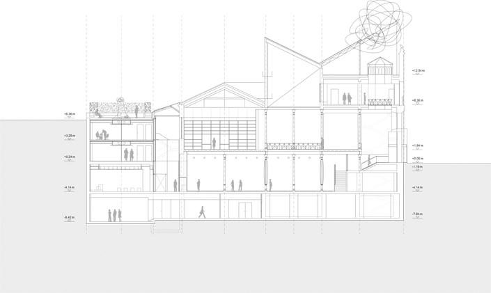 However, the new Fundació Antoni Tàpies seeks above all to contribute to a new generation of museums understood as centres of cultural production by offering a range of spaces suitable for diverse artistic practices; it also hopes to create thermodynamic balance and enhance the existing building. Another of the goals of this new generation of museums is to intensify the experience of the visitor, who is given an overview of the complex programmatic network that sustains the production of culture, as well as the Modernista (Art Nouveau) building itself, as an actual part of the exhibition system.