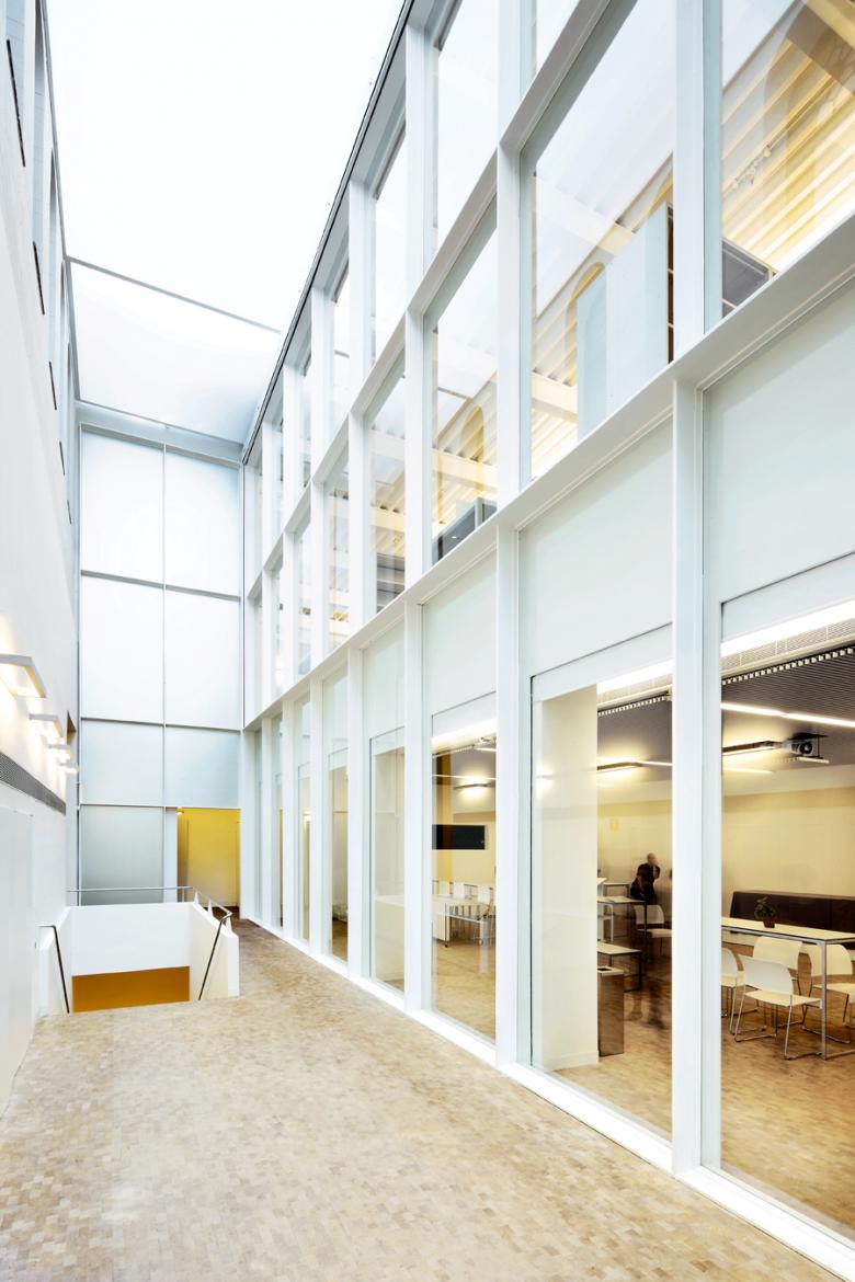 In environmental terms, the extension involves a substantial improvement to the natural lighting of the original building and of the formal aspect of the whole. Furthermore, the intervention has been contained in a single volume in order to reduce the number of energy interchanges.
