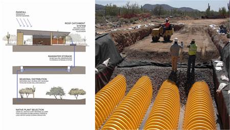 It was critical that the site and building design be highly tuned to the specific conditions of this sensitive desert site. As a result, the design process involved a significant amount of time mapping and exploring the site. Water drainage patterns and vegetation patterns drove much of the site and building design.