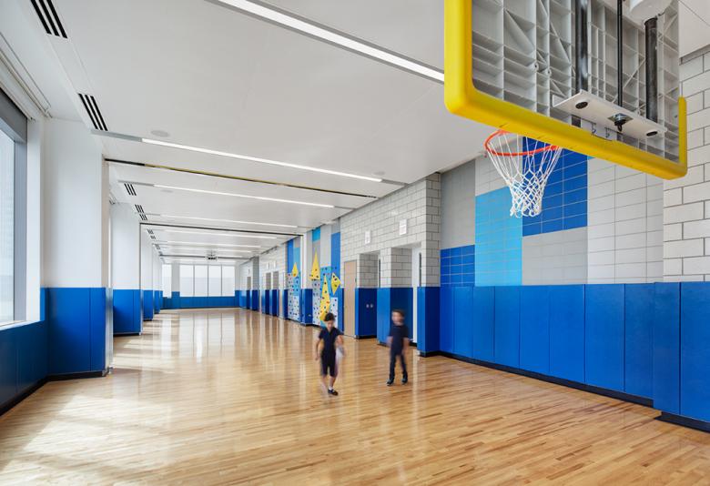 As a multi-story school, the design was developed around vertical strategies that limit circulation time. The cafeteria, multi-purpose room, and library are among the spaces strategically located on floors 5-7 to promote a feeling of community, while enabling easy circulation from classrooms at the base and the top of the building. With three elevators, two light-filled stairwells and with centrally stacked common spaces, walkability is promoted and accessibility is achieved.