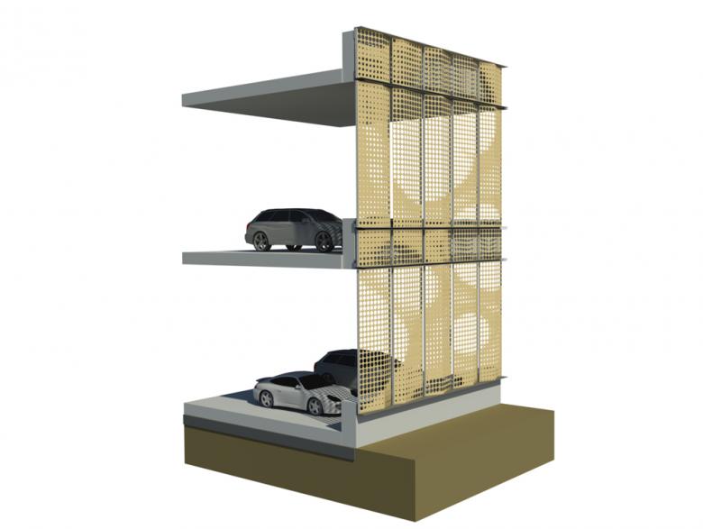 This project redefines the traditional stack of cars and concrete. Digitally fabricated steel panels provide a stunning façade while simultaneously promoting proper ventilation, and enhancing safety and security. The steel panels are more than just functional – they create an intriguing graphic pattern and are designed to help minimize light pollution in the surrounding neighborhood. Combined with a progressive structural system, this project is significantly less expensive than a typical parking structure of similar size.