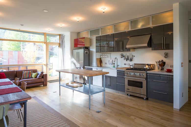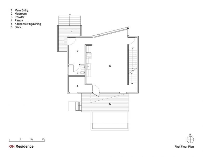 The home is designed with a less traditional approach to living. A compact open floor plan experiments with domestic spaces that adapt as a family transforms: main level kitchen/living/dining for embracing the active life of family and friends; upper level loft-like retreat for lounging, sleeping and taking in powerful views; a daylight basement of private compact daylight bedrooms. The interiors are organized by a north-south transparency of living spaces flanked by solid volumes of circulation and support spaces adjacent to neighbors. The garage, which takes advantage of the alley access, allows for an urban courtyard, and has the ability for a future second level.