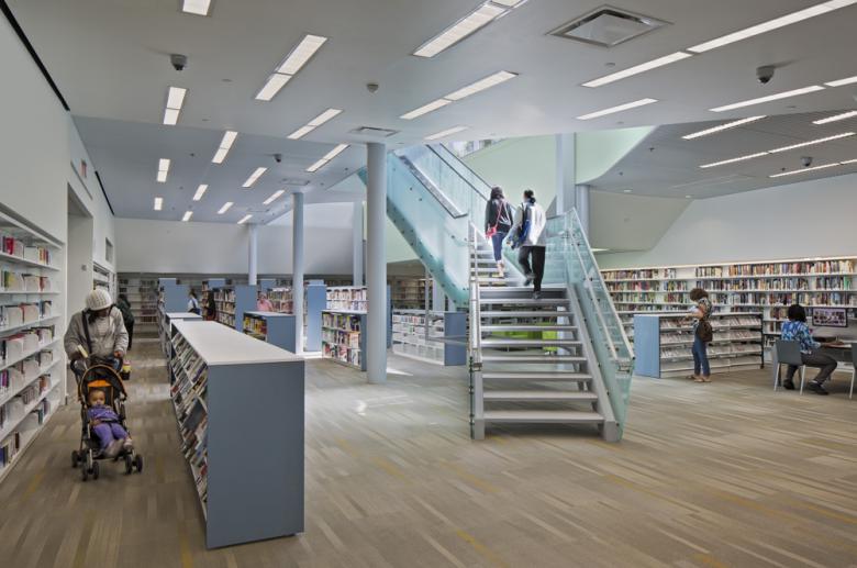 The architecture of New York responds to very different contexts – from extremely urban to rural farmlands, big cities and small. The rich history of significant cultural institutions that are public resources influenced our project, specifically the role of libraries in cities. Libraries are one of the last places that provide publically accessible interior space, and today the role of libraries has become critical in providing access to technology and a wide range of other services. Our project for the Schomburg Center for Research in Black Culture includes work on the original Carnegie library that is now part of that institution. We were very cognizant of the legacy of the Carnegie libraries, and the access they provide for diverse communities around the world. Glen Oaks is within Queens, the most diverse borough of New York City. Our Glen Oaks Library aspires to that tradition, providing openness and access to information to the Glen Oaks community.