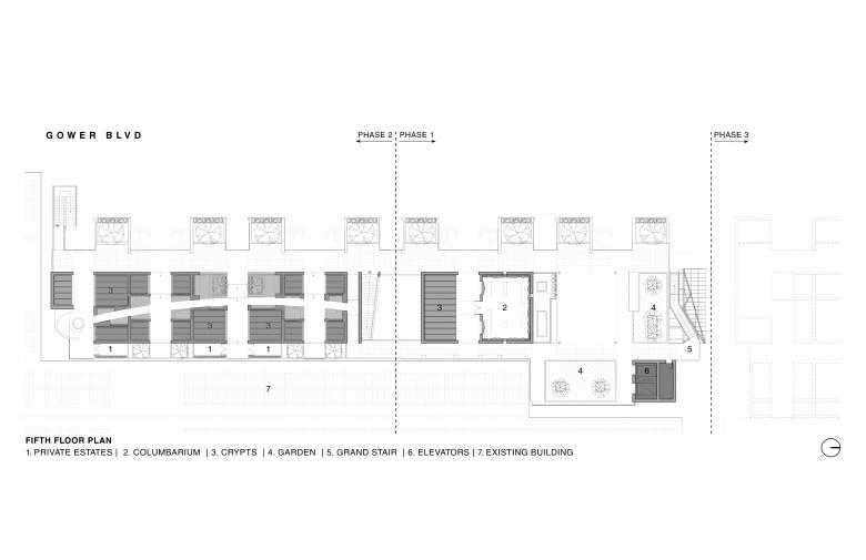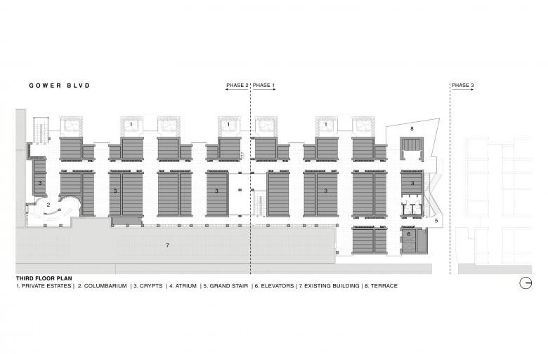 RS: By expanding vertically, the completed three phases of the mausoleum will avoid disturbing 25 acres of ground space, establishing a new vertical mausoleum typology that promotes change within an industry where ground space—and six feet under—is at a premium.