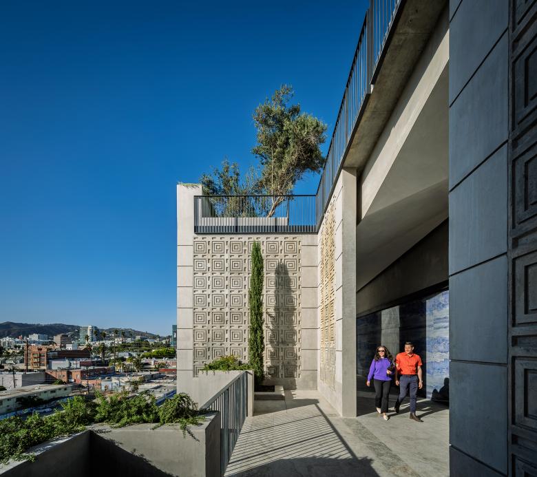 RS: Hollywood Forever Cemetery’s Gower Mausoleum is a testament to innovative design and discovery. This five-story, 100-foot-tall structure reimagines memorial architecture by integrating bold design with evocative landscape. Conceived as a vertical landscape, the design complements the cemetery’s flat, park-like grounds.