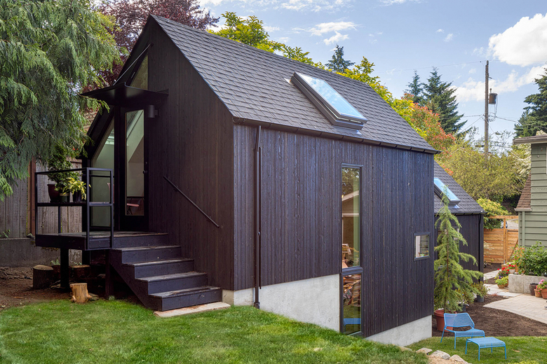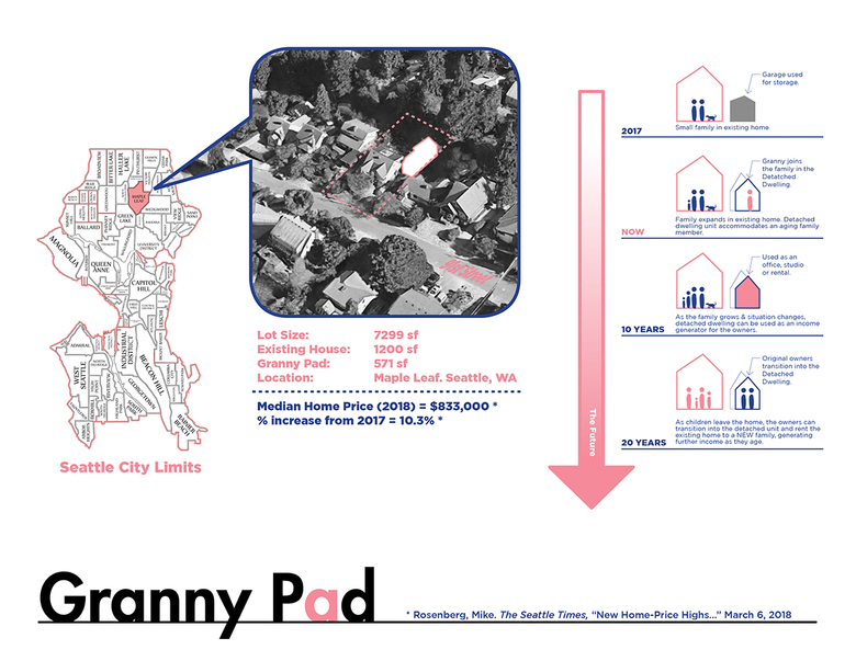 Located just north of Seattle’s University District, Granny Pad is a 571 square foot detached dwelling transformed from an existing garage into a lofty, open living space. The project began when the client couldn’t find appropriate housing for "Granny" in their neighborhood. With a growing family, they didn’t have enough space in their house to accommodate her needs and maintain the privacy everyone in the family wanted. And with a shortage of affordable housing in Seattle, the option of moving to a larger house in the city was out of reach.
