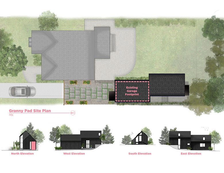 The firm was hired by a Seattle homeowner to create Granny Pad, a spacious living quarters converted from a backyard garage. The residential addition was built to give the aging family member a safe and well-designed home, bring childcare to the growing family, and to maintain privacy for everyone involved.