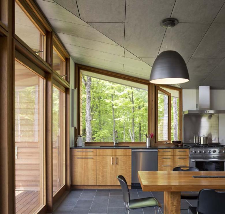 Situated on 300 acres of woodland, the project’s idyllic rural setting was a major influence on the design and orientation of the structure. Vermont has a rich tradition of houses with agrarian outbuildings and secondary barn structures. Ryall Porter Sheridan wished to respect the strong, simple formal tradition of these structures with the design of the studio, but build and detail the project in a contemporary manner.
