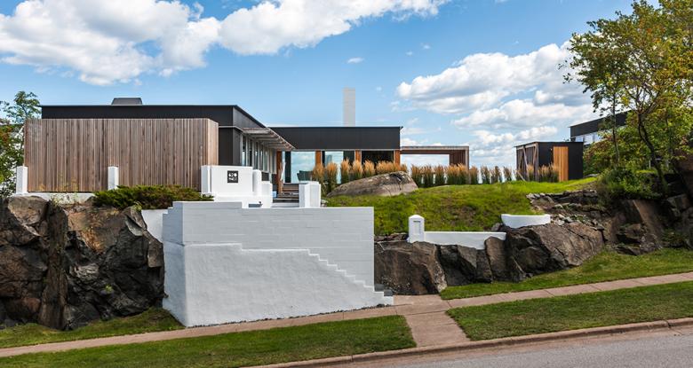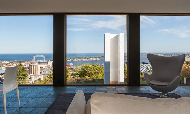 By insulating, the basement was transformed to make it an effective occupied space. The new main floor opens onto multiple outdoor spaces that provide a variety of opportunities for the owners to enjoy the light and the beautiful views of Lake Superior. In aggregate the house appears a contradiction; both rooted in stone and floating beyond its past footprint towards the lake.