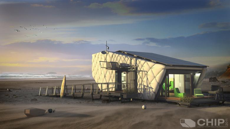 CHIP challenges any preconception of what a net-zero house is architecturally and technologically. Unhindered by obligations to the common shed or modern box design theme, CHIP’s design team looked to re-invent, reorganize, and reimagining the role of technology, engineering and social priorities of the house, uninterested in that which was already solved and resolved. CHIP brings forth a new idea to disrupt the status quo imagery of the standard American home offering a refreshing new take on alternative future housing for the American homebuyer.