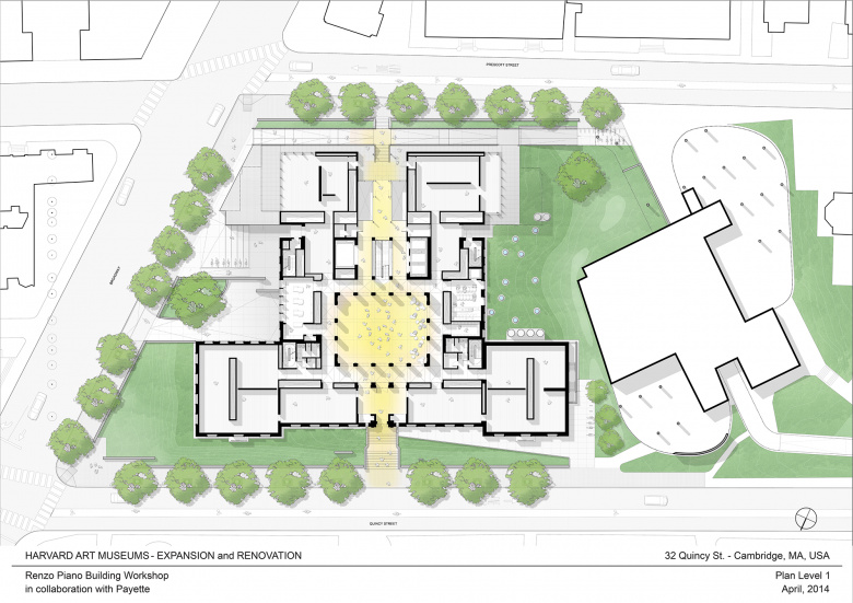 Harvard University’s three art museums – the Fogg, the Busch-Reisinger and the Sackler – are being consolidated into one reorganized and upgraded facility, Harvard Art Museums, on the current site of the Fogg Museum on Quincy Street. The restored historic courtyard of the Fogg Art Museum will be at the heart of 200,00 sq. ft (18,500 sq.m) of new museum space.