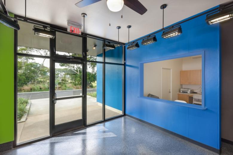 One of the most noteworthy aspects of Hawaiian architecture is that it tends to really respect its natural setting. Shade is incredibly important, as is Airflow, and many spaces can be designed without walls or windows, completely open to the elements. As with most architects who design in Hawai`i and care deeply about what they are designing, we worked hard to orient the facility to benefit from the natural trade winds as well as solar orientation for rooftop PV. Instead of air conditioning every space, we relied primarily on natural and mechanical ventilation and created several large spaces that are either completely or mostly open-air; this includes a large open air “lanai” (gathering space), an education pavilion, and a triage porch. We also utilized deep overhangs to create additional exterior circulation paths that allowed our interior footprint to be minimized. The HWC is very Hawaiian in that it allows the user and visitor alike to appreciate the magnificent Hawaiian climate.