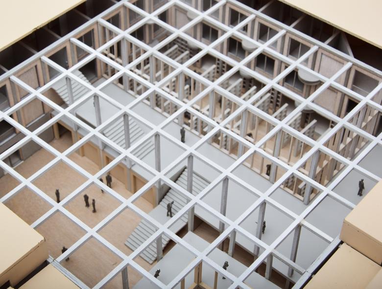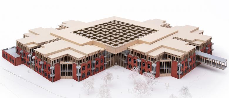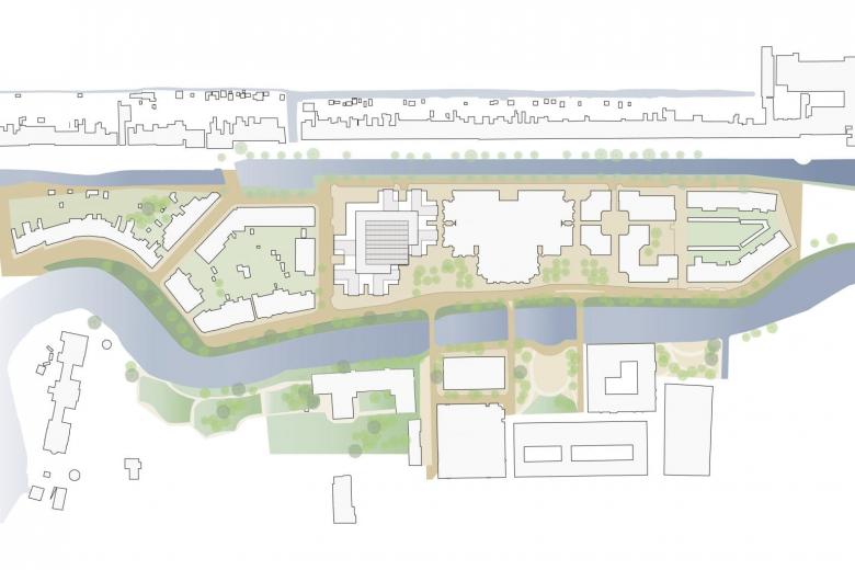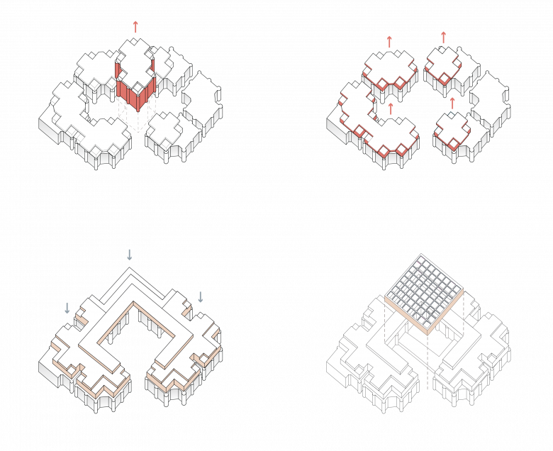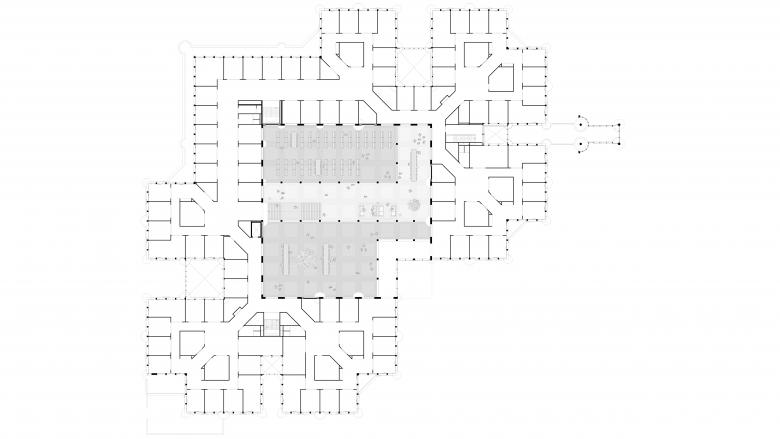 Competition. Leiden university asked for the renovation of the Cluster Zuid building, which would make it more connected as a whole. The existing building was made of seven separate smaller buildings (called houses) that were connected through two courtyards. We presented a vision in which we demolished the middle house and connected the remaining houses around a large new inner courtyard to promote interactions and collaborations. The story we told them was that with this renovated building, the university will win more Nobel Prizes, because sharing knowledge and working together is the key to winning.
