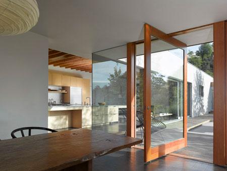 The house is part of the evolution of our work.  The redwood and cement plaster are similar to two residences we completed prior to this house, and elements of the Hidden House informed other projects that we’ve done since.  The large wood pivot doors and the beamed ceilings found their way into retail spaces.