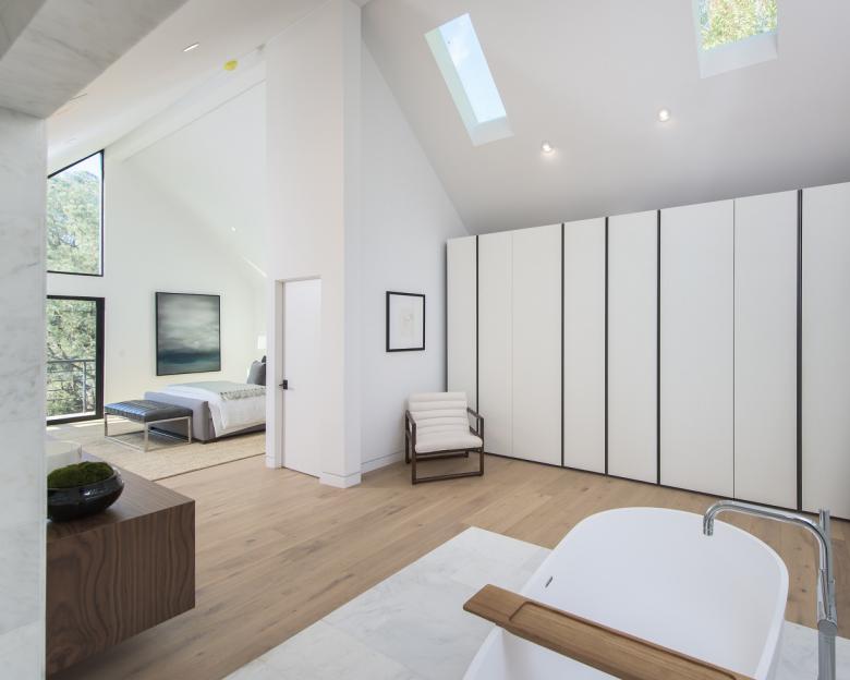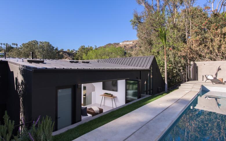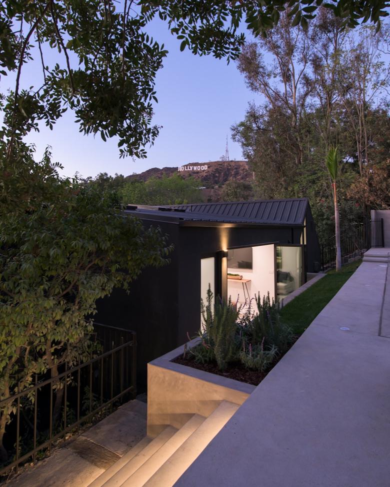 The home is situated very close to the Hollywood Sign and the main focus was on opening the house up to the Hollywood Sign view, and emphasizing indoor-outdoor living with lighter and brighter spaces.