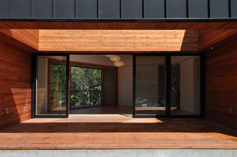 Sited in a valley between the Cumberland Mountains and the Great Smoky Mountains, the immediate context of the Holston River House consists primarily of an eclectic mix of small gable roof structures, pre-manufactured mobile homes, and the houses of an early 20th century company town centered around a local zinc mine.  While the narrow gable form is evocative of the modest, unpretentious forms of some of these nearby buildings, the expansive glazing and framed views come from a more specific desire to integrate building and landscape.  While there may be no consistent stylistic vision that describes the architecture of Tennessee, the notion of achieving a site and culturally specific architecture from region to region and site to site is one that continues to inform the architecture of the state.
