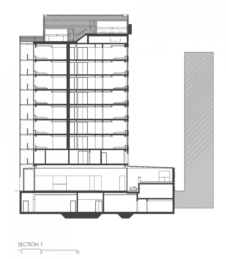 Hotel Americano is at a different scale than many of the projects that have been done in the NY office. The Carroll Street [residential project in Brooklyn] is of a similar scale, though a very different program and site. Where it is similar is in the complexity and density of program, in this case contained in a very small site.
