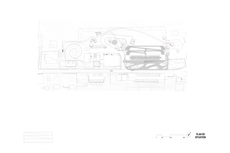 BIG are known for turning architectural diagrams into often geometrically twisted buildings —Hôtel des Horlogers is no exception. The hotel rooms are arranged along a promenade architecturale that bypasses all rooms and is continued as a pedestrian path above the green roofs of the lower floors. Unfortunately, this beautiful idea was lost in the executed building; security concerns made it impossible to allow the general public to walk across the guest wings. Nevertheless, watchmaking, architecture and nature are zigzagged together in the building’s long ramp. The luxury watchmaker that commissioned the new hotel also had BIG design the neighboring Musée Atelier Audemars Piguet, completed in 2020. There, the spiral shape was chosen to signify the actual process of watch making.