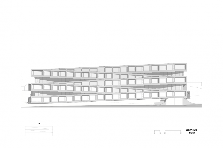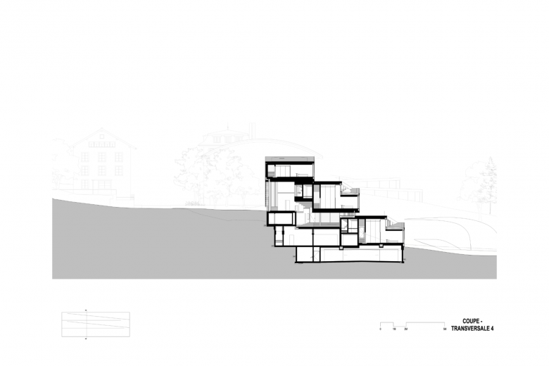 The Z-shaped hotel is composed of five ramps in the landscape. The tilting slabs gradually descend towards the valley, a reference to the winding journey watchmakers used to take to bring their goods to the market — the Chemin des Horlogers, a historic route from the Vallée to Geneva. Now, the opposite: the buyers make the trip to the little factories.