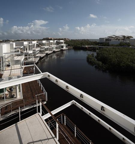 The hotel has four main public areas: lobby, spa, restaurant with banquet halls, and beach club. Lodgings consist of 128 villas (grouped in five zones): 20 two-storey villas around a majestic cenote; 66 jungle-waterside villas, served by a system of canals; 20 villas on the central lagoon; 16 villas among the mangroves, built like palafittes around a lagoon; and 6 villas along the beach; in addition to the presidential villa.