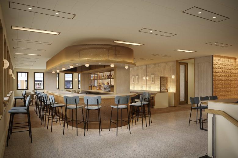 Rendering of bar/dining. (Visualization: Dutch East Design)