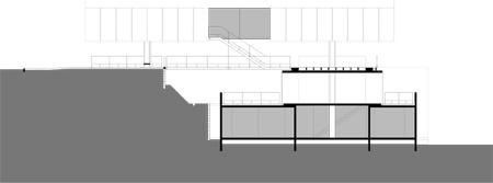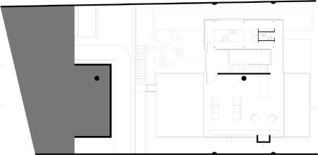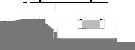 The most striking feature of the site where the house is built is a six-meter drop separating the street from a lower level of the land, next to a small forest on the opposite side. The lower level of the terrain can barely be seen from the street because of the steep drop.