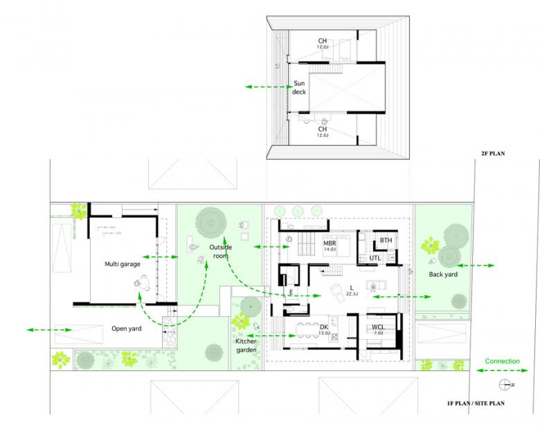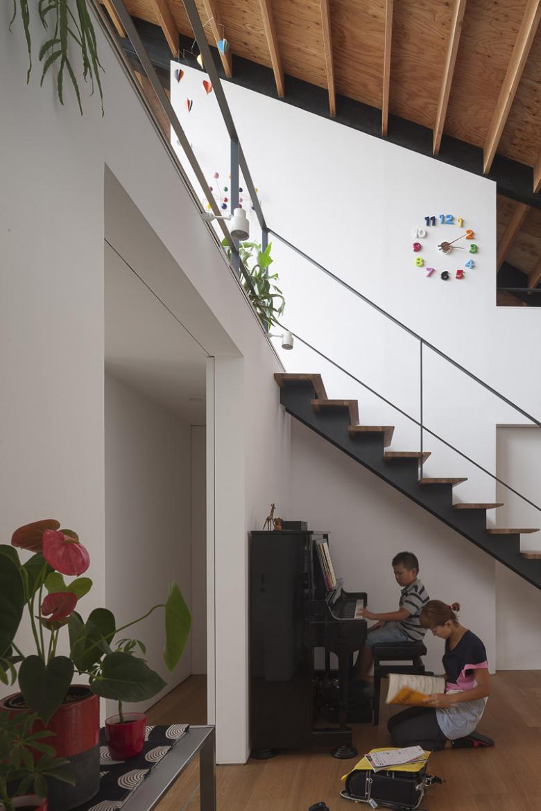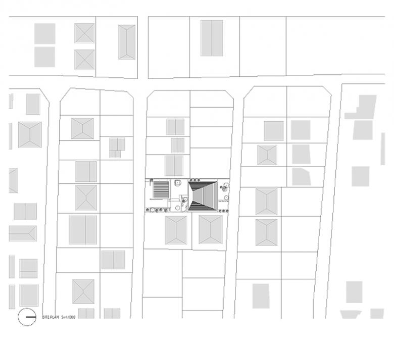 We felt that in the context of the new housing development, an open facade that communicates the presence of the residents would contribute a sense of security to the streetscape, while the garden would help recreate the nature that had been lost with development. The large hip roof is our homage to the traditional rural landscape that was also lost with development. The time the family spends with nature in the shade of this roof is the symbol of the house, which we hope will contribute to a positive living environment in the broader neighborhood.