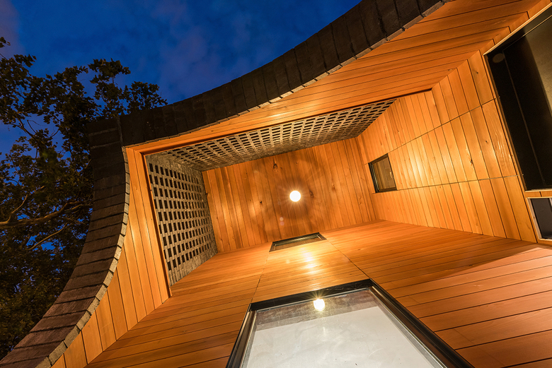 The formal articulation and surface application of the home alludes to the rich history of the neighborhood. The glazed masonry detailing of the main house pays homage to the dozens of brick churches located within a half-mile radius. On the opposite end, the carriage house references the humble steel worker cottages through the application of clapboard siding and vertical battens. Within the courtyards, the Cor-ten steel panels and Western red cedar siding were selected for their ability to weather over time. The cedar was treated with a bleaching oil to accelerate the weathering process.