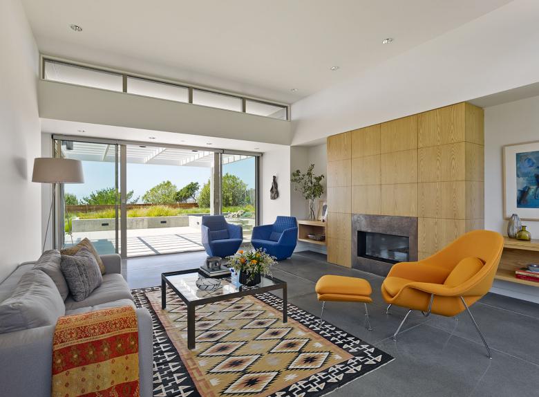 The main ideas and inspirations were based on topography, orientation, views, and zoning restrictions. Organized around a central courtyard, the home was configured to address the topography, orientation and views of the Pacific Ocean and the adjacent state park that is reminiscent of a small clustered village.