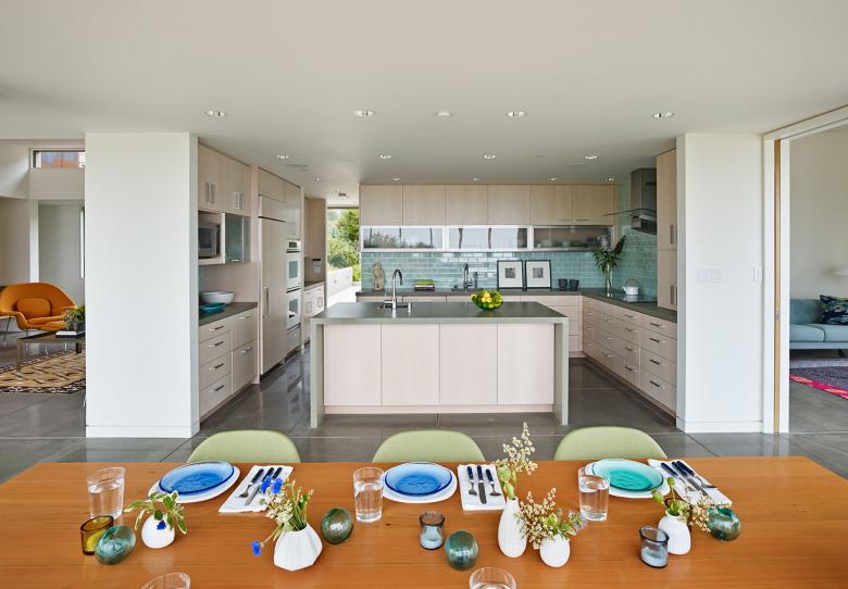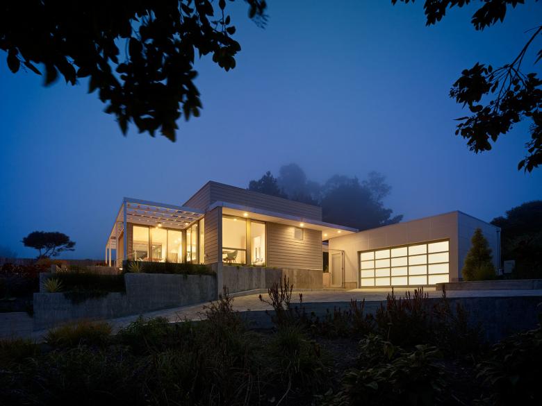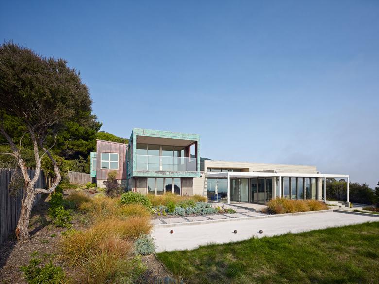 This residence is situated along the mountainous coastline north of San Francisco in Marin County, California and sited to take advantage of spectacular views towards the Pacific Ocean and surrounding state park.