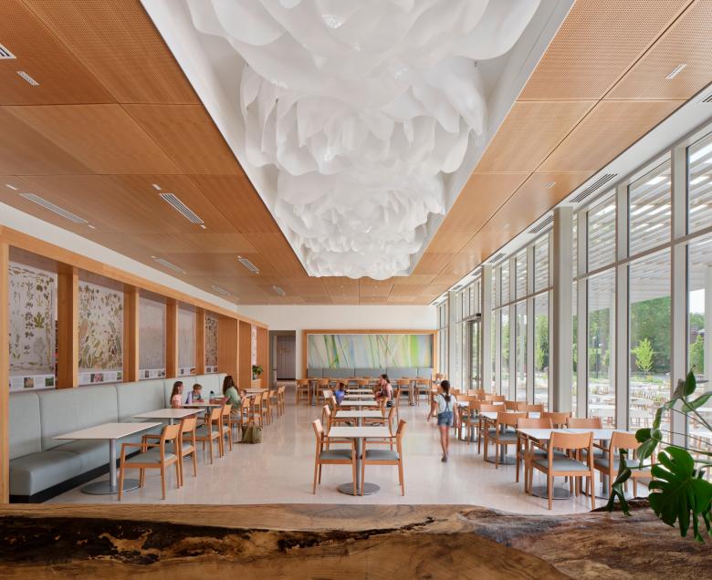 The Jack C. Taylor Visitor Center includes a flexible auditorium and classrooms for community events and education, providing new spaces for visitors and garden staff to learn about plants while reinforcing the Garden’s reputation as an institution for scientific research and education. Amenities including a restaurant and café, a new gift shop, and an event center provide a welcoming atmosphere for the local community, while accessible guest services including barrier-free restrooms, family restrooms, and a calming room to ensure a comfortable visitor experience.