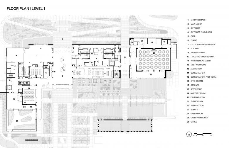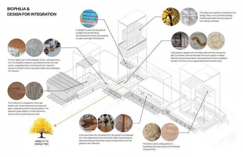 Inspired by the Garden’s rich history and extensive botanical collection, the Visitor Center integrates seamlessly with its natural surroundings, blurring the boundaries between indoor and outdoor spaces to create a holistic visitor experience. This architectural approach not only reinforces the Garden’s mission but also ensures inclusivity and accessibility for all visitors.