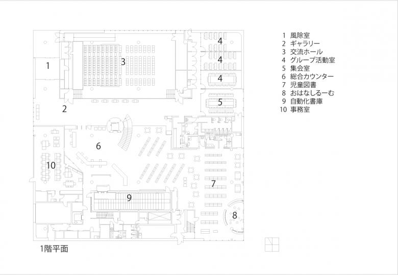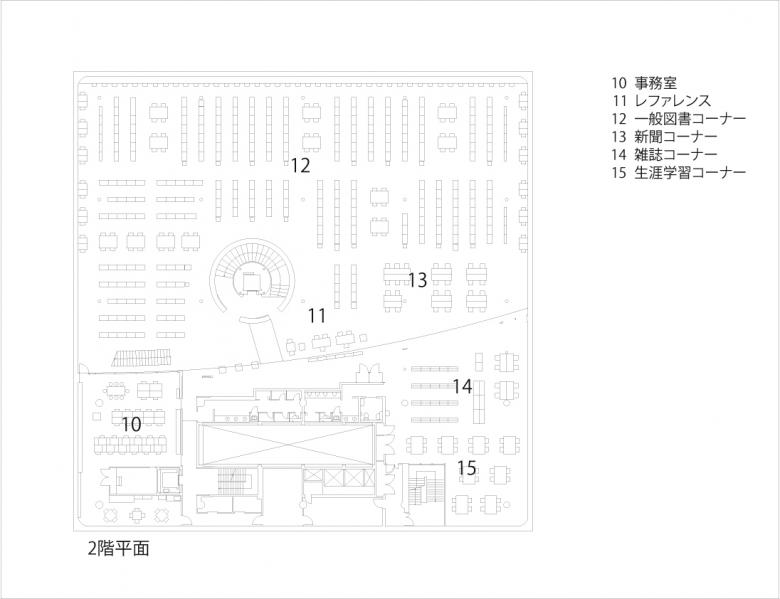 Our plan was chosen from those submitted in an open call for design proposals. The site was an irregular former factory lot cut off during the construction of the city’s outer loop road. The southern part of the city where it’s located experienced a growth in population after the prefectural office moved there, so new public facilities were needed. We proposed locating the building close to the road, both out of consideration for the nearby residential neighborhood and in order to increase its symbolic force. That freed up an open space on the lot that allowed us to give the reading room a better view and deepen the sense of unity between the exterior and interior areas.