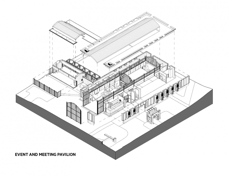 The complex was originally located across the street, but that site proved to be too restricted. We studied many iterations of the main events building to find a form that magically pleased both the traditionalists and modern loving alumni. Early options were seen to be ‘too barn-like’ or ‘too churchy’ or just too modern.