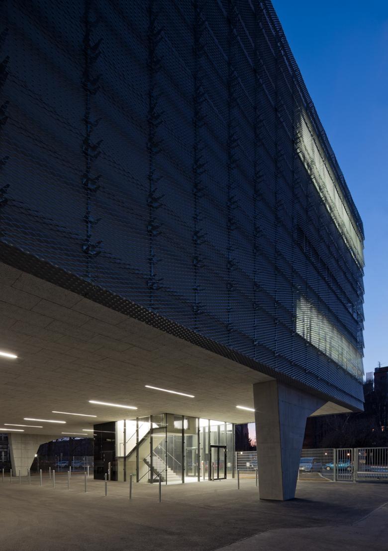 Der Zugang liegt unter der zehn Meter tiefen Auskragung der Deckenplatte.