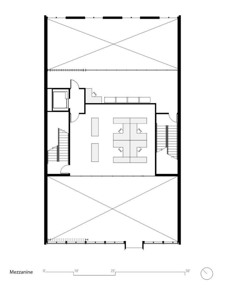 Mezzanine plan: office and maker space (Drawing: Graham Baba Architects)